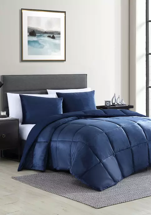 Twin/TwinXL set measures: Comforter- 86 in L x 66 in W, Standard Sham- 21 in L x 27 in W; Full/Queen set measures: Comforter- 96 in L x 92 in W, Standard Shams- 21 in L x 27 in W; King set measures: Comforter- 96 in L x 110 in W, King Shams- 21 in L x 37 in W.