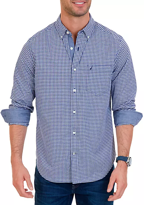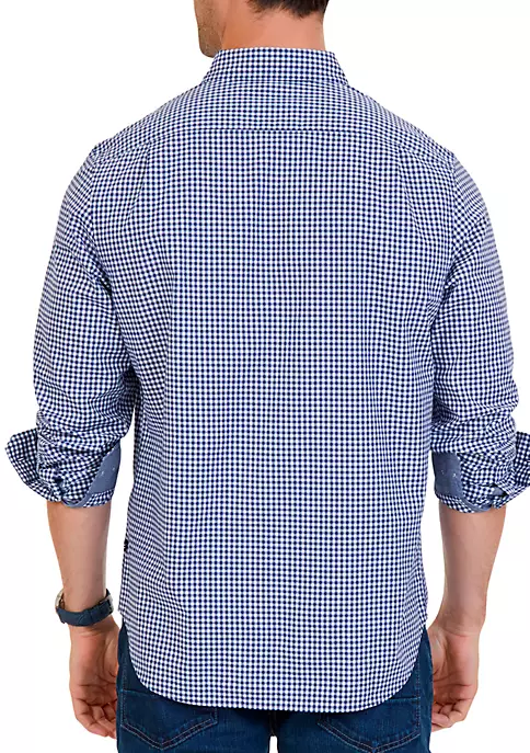 Ready to move with you wherever the day takes you, this shirt is crafted in a stretch cotton fabrication that keeps its shape and stays comfortable all day. A classic fit and crisp gingham design finish the look of this smooth and composed everyday essential.