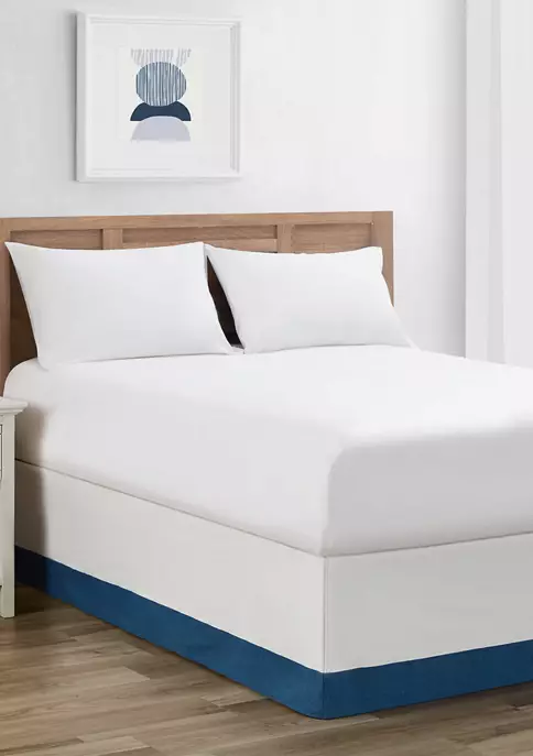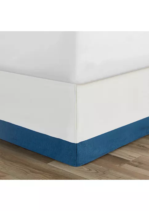 The Nautica colorblock bedskirt is printed with twill texture combining classic navy with a crisp white. Crafted for long lasting use, the bedskirt drop is 15″ 100% cotton and platform is made of 100% polypropylene. Featuring split corners for a neat tailored look, this bedskirt is easy to care for and machine washable.