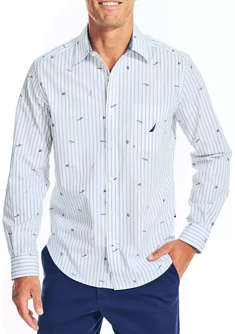 Crafted in soft cotton, this printed shirt from Nautica is a handsome pick for any occasion.