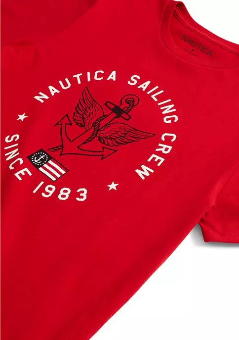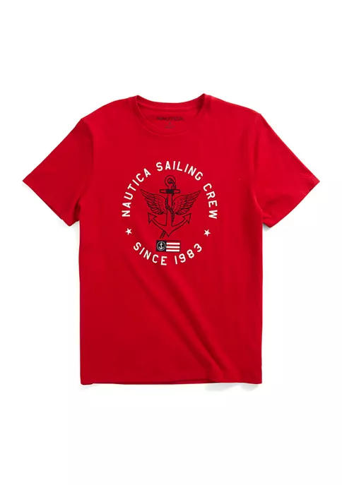 When the weekend arrives it’s time to relax your style, and this athletic graphic tee feels just right This classic-fit crewneck has a ribbed collar, cuffs, and hem with slits.