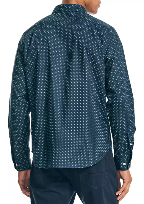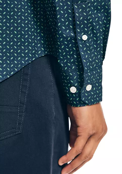 - Long button-cuff sleeves